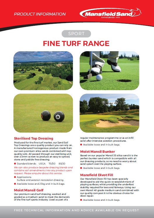 Our Mansfield Divot Fill has been specially developed to aid the quick re-establishment of playing surfaces, whist providing the underfoot stability required for tees and fairways. Using our own Mansil 40 grade medium sand combined with our quality compost it is the obvious choice for divot repair.