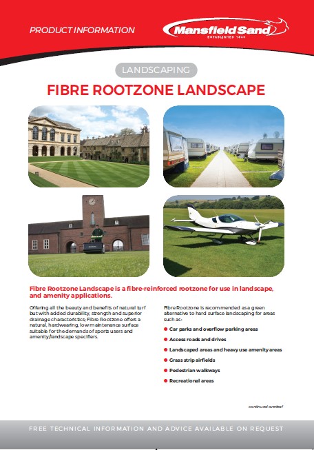 Fibre Rootzone Landscape is a natural turf growing in a fibre-reinforced rootzone for use in landscape, sports and amenity applications.