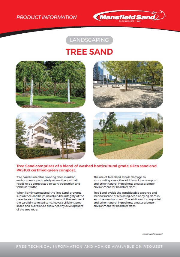 Tree Sand comprises of a blend of washed horticultural grade silica sand and PAS100 certified green compost.